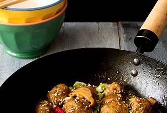 Para el wok de shiitake200g de setas shiitake1 ajoUna cebolletaDos cucharadas de salsa de sojaDos cucharadas de salsa de ostrasMedia cucharada de salsa de pescadoUna cucharadita de azúcar El zumo de media limaSésamo blancoUna guindilla (opcional)ELABORACIÓNEmpezaremos elaborando las albóndigas. Para ello, picamos la cebolleta, el ajo y el jengibre muy pequeñito. Si queréis, lo podéis picar con un robot. Picamos también el seitan y lo mezclamos con todos los ingredientes. Salpimentamos al gusto y añadimos un pellizco de azúcar. Pre-calentamos el horno a 180º. Formamos las albóndigas y las pasamos a una bandeja de horno. Las cocemos durante 15 minutos. Reservamos.