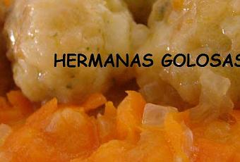 He puesto una sartén amplia a fuego medio con dos cucharadas de aceite y he rehogado la cebolla junto con la guindilla y una pizca de sal. Cuando ha perdido la tirantez he añadido la zanahoria y he rehogado hasta que han tomado color. Le he añadido el vino blanco y he cocinado hasta que ha evaporado. Le he añadido una cucharada de harina, la he rehogado unos segundos y a continuación le he añadido el caldo. He cocinado a fuego medio mientras he preparado las albóndigas.