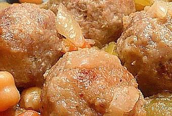- Escurrimos las judías y las zanahorias y las repartimos por encima de las albóndigas. Seguidamente el puerro pochado.