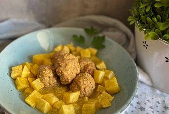 Yo la suelo preparar a menudo, y reconozco que me pierde el mojeteo en esa salsa tan rica, y por eso hoy, he cambiado el pollo por unas albóndigas. Y sí. Ha sido un exitazo.