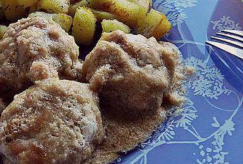 Volvemos a poner la salsa en la sartén y añadimos las albóndigas y las dejamos cocer unos minutos junto con la salsa. Servir con la salsa por encima.