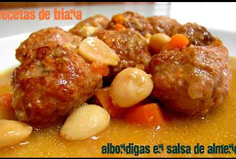 1.- En un bol ponemos la carne picada y sal junto con el perejil y los ajos muy picados mezclando bien. Dejamos una media hora para que coja sabor la carne.2.- Añadimos los huevos y la miga de pan que previamente hemos tenido en leche, procurando que este bien escurrida. Mezclamos bien y vamos añadiendo pan rallado hasta que nos quede una textura que podamos trabajar para realizar las bolas.3.- Una vez hechas las albóndigas del tamaño deseado las pasamos por pan rallado y freímos en una sarten con aceite y reservamos.4.- En ese mismo aceite tostamos las almendras un poco.5.- Añadimos las cebolla y la zanahoria picada en brunoise y pochamos.6.- Añadimos un vaso de vino blanco y a fuego fuerte evaporamos el alcohol.7.- Añadimos las albóndigas y el caldo de carne junto con un par de cucharadas de salsa de soja.8.- Dejamos de reducir el caldo a fuego medio, las albóndigas y la zanahorias deben estar tiernas.9.- Si fuera necesario o nos gustase, ligamos la salsa, podemos hacerlo con un poco de harina de maíz disuelta en agua fría...