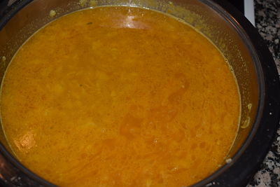 Remueve, espera a que hierva y añade dos vasos de caldo de ave. Espera a que vuelva a hervir y remueve.