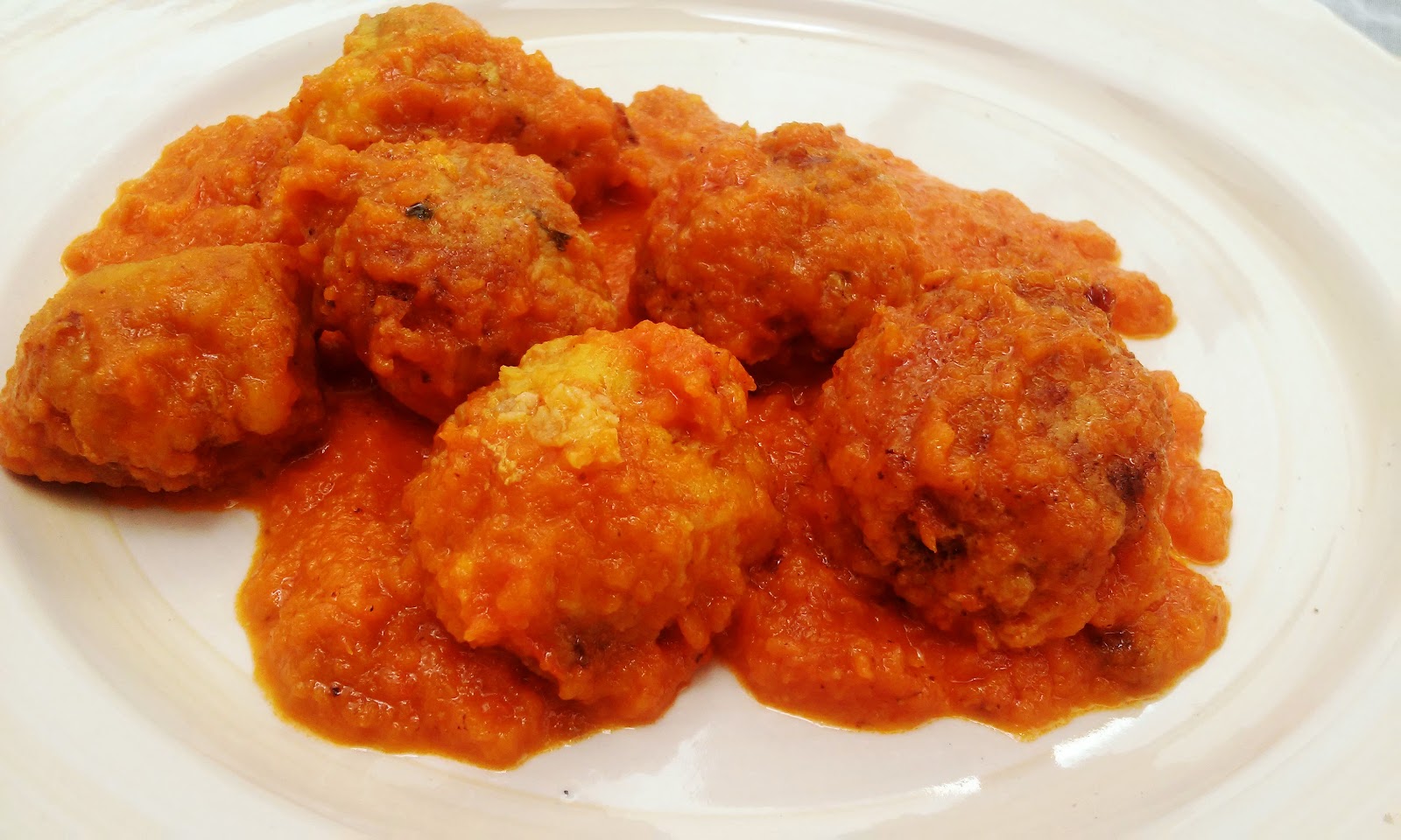 Las más usuales y tradicionales son las de carne, creo que las más antiguas, pero poco a poco hemos ido incorporando al recetario pescado y verduras. Cualquier variedad es deliciosa. En esta receta que os traigo, si ricas quedan las albóndigas , ni os cuento como está la salsa. Pero más que contar, lo mejor es que os presente el plato , con el que vais a disfrutar sin lugar a dudas.