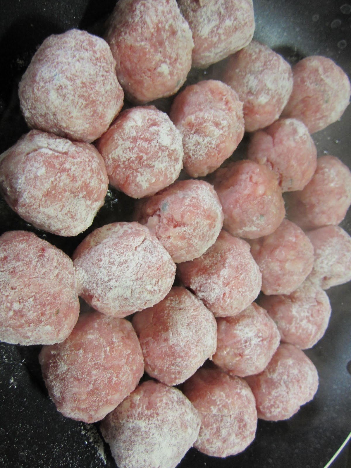 De mientras enharinamos las albóndigas y en una sartén doramos un poco las albóndigas