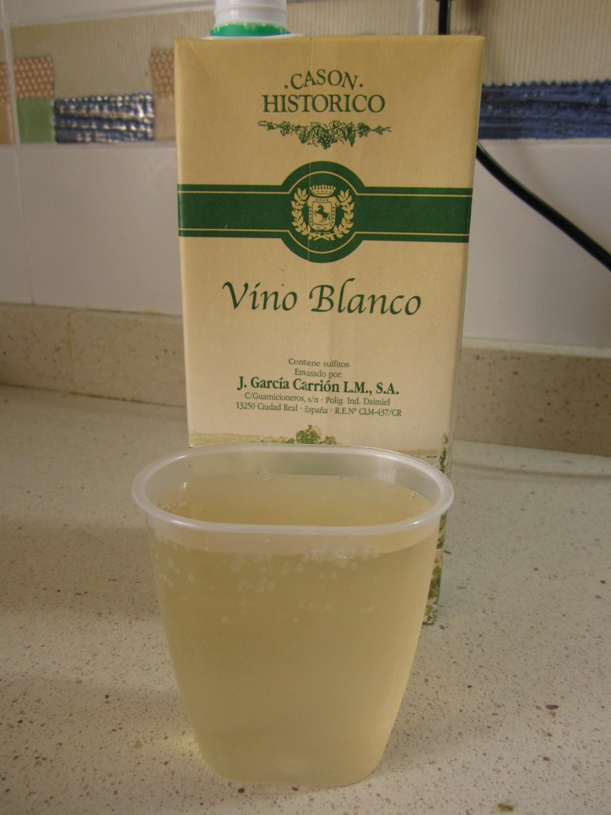 Las judías y los champiñones laminados.Añadimos el vino, el tomate y una pastilla de avecrem.