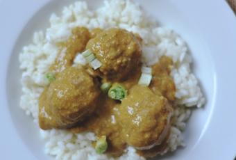 Ingredientes- 500 gramos de carne picada (en esta ocasión la mía era de ternera, pero podéis usar de pollo o mixta sin problema)- 1 huevo.- Perejil.- Sal- Pan rallado.- Aceite de oliva- 400 ml de leche de coco (1 lata).- 1 sobre de curry amarillo.- La parte verde de una cebolleta para adornar (opcional)
