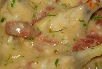 Cuando empiece a hervir añadimos las alcachofas y dejamos cociendo al menos media hora, iremos pinchando en el corazón hasta que sintamos que está blando.