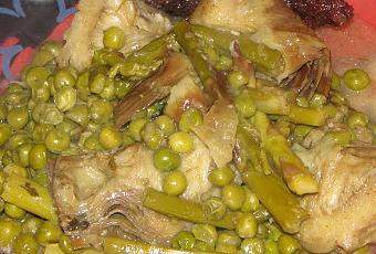 En la misma grasa, freír la cebolla picada y los ajos tiernos cortados por la mitad unos 8 minutos, añadir el tomate rallado, una pizca de azúcar, sal y sofreír hasta que esté en su punto.