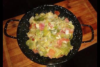 En la misma sartén donde habéis realizado el sofrito, freís un poco las alcachofas y le añadís la mezcla anterior, le dais varias vueltas para que se mezclen todos los ingredientes y ya están listas para comer.