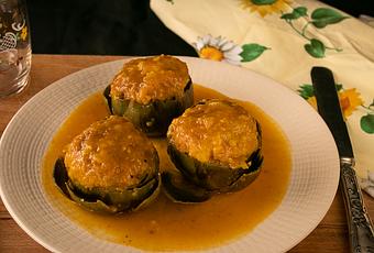 Recuerdo que cuando mi madre preparaba sus alcachofas rellenas de carne, yo me echaba bastante salsa para mojetear, porque era una auténtica delicia.