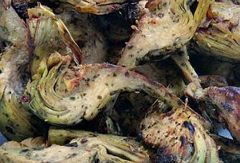 - Cuando estén todas preparadas, poner a calentar aceite en una sartén, escurrir las alcachofas y ponerlas en la sartén, con sal. Saltear, que queden bien doradas y servir.