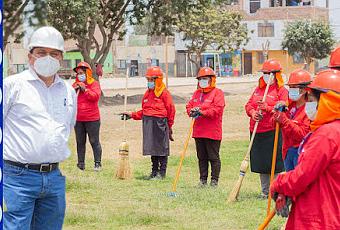 La autoridad edil verificó la entrega de implementos de protección personal e inicio de las faenas en el centro poblado Unanue, exhortando a trabajar con la responsabilidad del caso, recordando que ante cualquier eventualidad los beneficiarios se encuentran protegidos por una póliza de seguro.