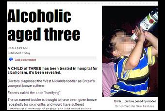 Con sólo tres años ya sabe qué son los problemas derivados del alcohol. Un niño británico, cuyo nombre no ha sido revelado, se ha convertido en la persona alcohólica más joven de todo Reino Unido. Los médicos, que han calificado el caso de "horrible", aseguran que el pequeño consume cantidades elevadas de alcohol al tiempo que presenta bruscos cambios de humor.