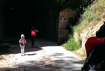 En la provincia de Alicante tenemos alguna de estas vías verdes. Nosotros habíamos estado recorriendo parte de la vía verde de El Maigmó, que discurre entre Tibi y Agost. Aunque, sin duda, la más conocida de nuestra provincia es la vía verde de Alcoy: una ruta de 10km. que discurre entre pinos, túneles y viaductos a través del parque natural de la Font Roja. Nosotros no hicimos toda la ruta. Cuando los peques se cansaron de andar dimos la vuelta y listo.