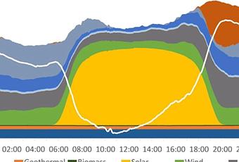 En el webinar se destacó el papel del almacenamiento de energía mediante baterías como un elemento esencial para avanzar en la transición de energía. Un ejemplo de esto es California, donde se observa con claridad el momento en que las BESS «rellenan» el hueco vespertino cuando cae la producción fotovoltaica y repunta la demanda eléctrica, desplazando a la generación fósil en las horas punta.