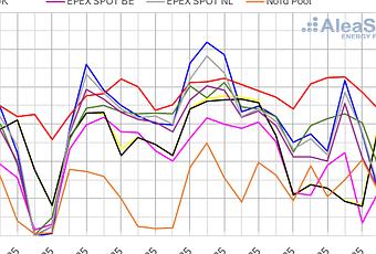 Los mercados alemán y francés marcaron un máximo histórico de producción eólica diaria para un mes de octubre. En el mercado alemán esto se produjo el 24 de octubre, con una generación de 1119 GWh y en Francia, el día anterior, 23 de octubre, con una generación de 393 GWh.