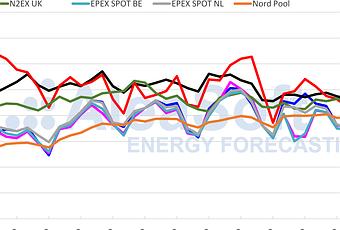 En el resto de Europa no ha habido homogeneidad en la evolución de los precios en los cuatro primeros días de esta semana respecto a los mismos días de la semana pasada. Los precios también han aumentado en otros mercados como el Nord Pool de los países nórdicos y los mercados EPEX SPOT de Francia y los Países Bajos, siendo este último el de mayor crecimiento, con un 3,4%. En el resto de mercados analizados los precios han disminuido en el período analizado, con el mercado EPEX SPOT de Alemania liderando las caídas con un descenso de un 10%.