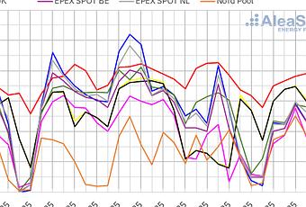 AleaSoft: La caída de la generación renovable impulsó la subida de los precios de los mercados europeos