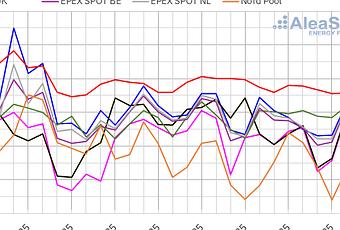 En cambio, en el mercado francés, donde la demanda es muy sensible a las variaciones de temperatura, la demanda aumentó un 9,3% respecto a la semana anterior, en una semana en que las temperaturas medias fueron 5.0°C más frías que la semana previa.