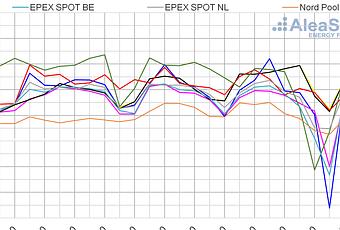 El mercado con el precio promedio más bajo en lo que va de semana, de 5,44 €/MWh, volvió a ser el mercado Nord Pool. Mientras que el mercado con el promedio más elevado, de 28,88 €/MWh, fue el mercado británico, seguido por el mercado MIBEL de Portugal, con un precio de 25,13 €/MWh. El resto de los mercados tuvieron precios promedio entre los 25,08 €/MWh de España y los 17,49 €/MWh de Francia.