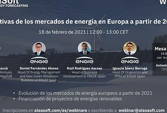 Para seguir analizando la evolución de los mercados y de la financiación de los proyectos renovables, en AleaSoft se ha comenzado a organizar el siguiente webinar, que se enfocará en las perspectivas de cara a la primavera de 2021. Será el 18 de marzo y en esta ocasión los ponentes invitados serán de EY (Ernst & Young). Además de los informes de largo plazo utilizados como input en la negociación de los precios de un PPA, en AleaSoft también se ofrecen previsiones de mercados eléctricos europeos en el corto y el medio plazo. Estos servicios son cada vez más demandados por los proyectos de energías renovables que han entrado en funcionamiento. Para más información, es posible dirigirse al siguiente enlace: https://aleasoft.com/es/atractivos-ppa-financiacion-proyectos-energias-renovables/