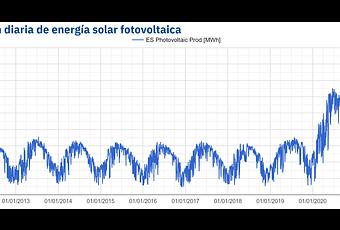 Recientemente, el 29 de junio de 2021, se rompió el récord de producción diaria fotovoltaica en España, registrando 88,2 GWh. Si se observa la producción diaria de los últimos años, resulta evidente que actualmente se está en plena revolución fotovoltaica. El auge fundamental se observa a partir de 2020, aunque desde fechas tan tempranas como 2018, desde AleaSoft ya se anunciaba que esta tecnología sería la líder de la transición energética en España.