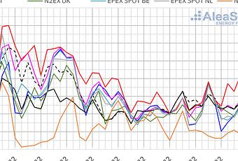 En la segunda semana de noviembre, los precios de la mayoría de los mercados eléctricos europeos aumentaron, siendo la mayor subida la del mercado IPEX, del 44%, mientras que, en los mercados MIBEL, N2EX y Nord Pool se registraron descensos, siendo el mayor el del mercado nórdico, del 37%. Sin embargo, en varios mercados se registraron horas con precios negativos o cercanos a cero y en el mercado nórdico el precio del 11 de noviembre fue el más bajo desde el 22 de noviembre de 2020