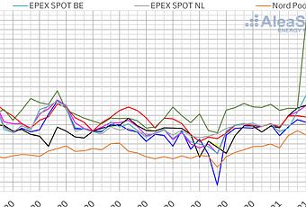 Las bajas temperaturas registradas en Europa durante la primera semana de 2021 provocaron récords de demanda eléctrica horaria o diaria en diversos mercados del continente y propiciaron el aumento de los precios del gas y de los derechos de emisión de CO2. A esta combinación de factores se unió una baja producción eólica y solar favoreciendo también precios récord en varios mercados eléctricos europeos. Los precios de los mercados de futuros de electricidad europeos también subieron en este contextoProducción solar fotovoltaica y termosolar y producción eólica