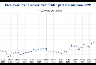 La subida de precios del CO2 y del gas está presionando al alza los precios de los futuros de electricidad. Los productos más afectados están siendo los de vencimiento más próximos, para los meses del tercer y cuarto trimestre de este 2021 y el producto anual para 2022. Este último ya está cerca de los 68 €/MWh en el mercado OMIP para España, unos precios anuales nunca vistos en el mercado eléctrico español.