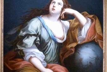 La Astronomía mira a los infinitos cielos con un compás en la mano y apoyándose sobre el otro brazo que reposa en una esfera celeste. Reni fue profuso en esa mirada perdida al infinito pues la usó para Santa Catalina, La Magdalena, Lucrecia y otras