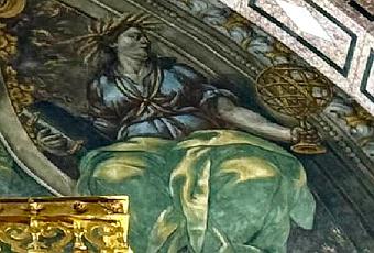 Encontramos una alegoría femenina con un libro en un lado y sosteniendo una esfera armilar en el otro entre las pinturas.