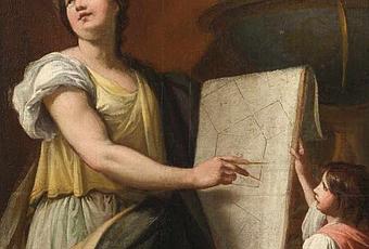 Mostramos la Alegoría de la Astronomía con el Teorema de Pitágoras y la Alegoría de la Geometría. Ambas pinturas se completan con varios putti con instrumentos, calculando o con libros.
