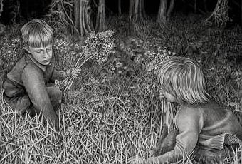 Uno de los elementos que más se puede ver en mis dibujos es la figura humana; seres que pudiesen ser sacados de mi propio entorno o no. Tiendo a utilizar la imagen de niños dentro de la composición, ya que quizás sea el elemento pictórico que más representa lo que me interesa transmitir en este momento con mis dibujos: lograr exponer el universo interno de estos personajes, fuera de poses académicas, generalmente en simples situaciones y entornos cotidianos.