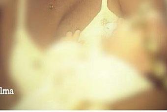 En la imagen, difuminada, se puede distinguir a Raquel con su hija en brazos, vestidas de blanco. La pequeña lleva una corona de flores, y de fondo, el cantante, también vestido de blanco.