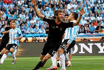 Quizás este mundial sea uno de los más contradictorios de la historia. Por un lado, clasificó a equipos inmerecidamente como Francia y a selecciones que no sabían que hacían en tierras de Mandela, como Grecia. Por el otro, demostró que los países tradicionalmente futboleros están en proceso de recambio, caso Inglaterra, Francia e Italia. Pero también demostró que los equipos sudamericanos podrían pelear los primeros lugares. La Selección nacional ingresó a la Copa del Mundo casi por la ventana, pidiendo permiso. Con derrotas patéticas como contra Bolivia o Brasil y con victorias cuasi milagrosas como contra Perú y Uruguay. Pero se clasificó y vinieron los "chupala", "la tenés adentro" y demás agravios a los detractores. De aquel 6-0 en la altura boliviana a este 4-0 contra Alemania pasaron muchos jugadores, partidos y esquemas futbolísticos. Es cierto que se vislumbraron ciertas mejorías, se encontró en Higuaín el 9 que escaceaba, por ejemplo. También, Maradona entendió que era necesario jugar ofensivamente, fiel al estilo argentino, por eso la inclusión de tres atacantes.Como se dijo mientras se jugaba la primera fase, el seleccionado nacional ganaba pero no terminaba de ensamblar sus partes. Siempre el desequilibrio individual (que no está mal que suceda) terminó siendo el arma principal. Por eso se espero por la apilada de Messi, la guapeza de Tevez o el aprovechamiento de Higuaín como en el gol a México. Pero Argentina nunca fue un equipo seguro defensivamente. Maradona no pudo demostrar dentro de la cancha cuál era su defensa y quienes sus defensores. Salvo la inclusión de Clemente Rodriguez, no se llevaron laterales (error también cometido por Pekerman en el 2006); razón por la cual se improvisó con Jonás Gutierrez y luego con Otamendi y la realidad demostró que Argentina fue muy vulnerable por el sector derecho. La inexperiencia como lateral de estos dos jugadores, determinaba que Demichelis saliese muy lejos de su posición y deje unas lagunas importantes. México y Alemania se aprovecharon de estas situaciones. El entrenador nunca encontró la defensa ni el medio campo. Como bien dijo Horacio Pagani, Maradona fue preso de sus palabras "Jonás siempre juega", "Mascherano +10", entre otras. Ciertas situaciones ameritaron cambios de jugadores y de tácticas, algunas llegaron, otras no.La salida de Verón del equipo y el ingreso de Maxi Rodriguez le dio al medio campo un poco más de marca pero perdió en tenencia del balón y juego asociado: el peor mal para Lionel Messi. No tener un socio futbolístico (como Xavi o Iniesta) le significó a Messi tener que generar sus jugadas muy lejos del arco perdiendo de esta manera la chance de definir las jugadas, al mejor estilo Barcelona. Las participaciones efímeras de Agüero y Pastore dieron lugar a creer que nacía un juego asociado entre players de buen pie, sólo quedó en una ilusión. Argentina terminó dentro de los 8 mejores del mundo. ¿Está mal? ¿Es poco? ¿Merece más? Las casualidades no existen. En los últimos mundiales la selección perdió siempre en la misma instancia (salvo el caso de Japón - Corea 2002). Algunos siguen insistiendo en la falta de preparación del equipo. Sin embargo, en esta oportunidad se contó con más de un mes de trabajo previo a la competición. En aquel tiempo no hubo amistosos ni entrenamientos a doble turno, todos dieron sus razones: cansancio y miedo a las lesiones. El equipo que jugó hoy contra Alemania no mereció pasar de ronda y acomodarse dentro de los 4 mejores. Pensando en el futuro, la materia prima está. Messi, Agüero, Di Maria, Pastore, Romero son una excelente base para armar los próximos equipos. Heinze, Gutierrez, Palermo (que tendrían que agradecerle a Maradona de por vida la inclusión en el plantel), entre otros cumplieron su ciclo. El llamado de defensores laterales que estén acostumbrados tanto a la marca como al juego ofensivo será vital. De aquí en adelante hay tiempo para las reflexiones y los análisis. Si Maradona sigue o no es decisión de él, por lo pronto quien sea el DT en las próximas competiciones no podrá olvidar que Argentina juega ofensivamente, con juego asociado sostenido por una férrea defensa.