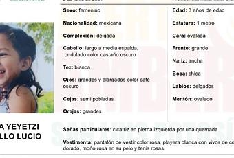 Por el momento, se desconoce el paradero de la menor, por lo que se considera que su integridad podría estar en riesgo, toda vez que pudiera ser víctima de la comisión de algún delito.