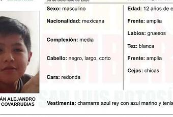 SLP.- La Fiscalía General del Estado emitió una Alerta Amber para localizar a la persona menor de edad de nombre Sabastían Alejandro Bustos Covarrubias quien fue visto por última vez este 8 de diciembre en las inmediaciones del Barrio de Santiago en la capital potosina.