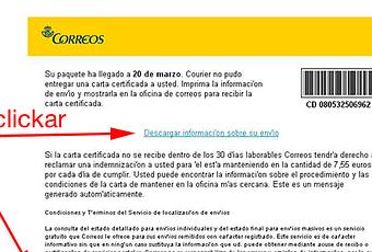 Una vez recibido en el dichoso (y falso) mail de “Correos” relativa a una carta certificada no recibida por el usuario, si se pulsa en “Descargar información sobre su envío” se abrirá un enlace de descarga de un archivo .zip o .exe que NO DEBE DESCARGARSE NI EJECUTAR ya que contiene el virus CryptoLocker.