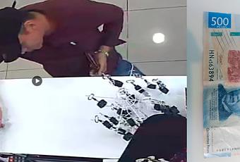 Estos billetes apócrifos presentan la misma serie, y a primera vista pueden parecer legítimos; sin embargo, al revisarlos con mayor detenimiento se aprecia que el papel y la tinta difieren de la moneda oficial. En un video captado por las cámaras de un negocio afectado, se observa a un individuo joven, con cachucha, realizando un pago con uno de estos billetes falsos.