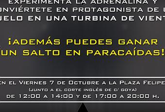 Si os gustan probar las emociones fuertes y tener la posibilidad de ganar un salto en paracaídas no os perdáis la cita el próximo viernes 7 de octubre en Madrid, en la Plaza de Felipe II (metro Goya).