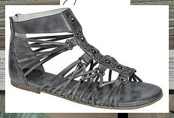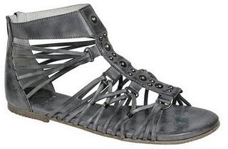 Sandalia abotinada tipo romana confeccionada en piel gris con efecto desgastado. Diseñada a partir de tiras de piel, cuenta con plantilla forrada en piel, suela de goma antideslizante, horma ergonómica, tachuelas plata y cómodo cierre trasero de cremallera.