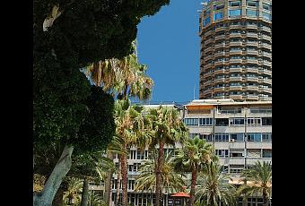 " Eladio padecía aquel clima sofocante sentado en un banco de la alameda de Colón. Enfrente, ante el edificio del Gabinete Literario y la terraza del hotel Madrid, el busto de Bartolomé Cairasco de Figueroa se sacrificaba estoicamente al calor, al polvo y a las sempiternas cagadas de paloma. Hasta los pájaros que solían combar las ramas se habían callado. Sólo de vez en cuando algún turismo o algún taxi vacío pasaba por el cruce con la calle Muro y se perdía por General Bravo "
