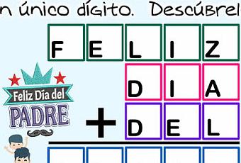 Una alfamética para el mejor padre: PARA+EL+MEJOR=PADRE. Recuerda no es una tarjeta es un reto matemático.