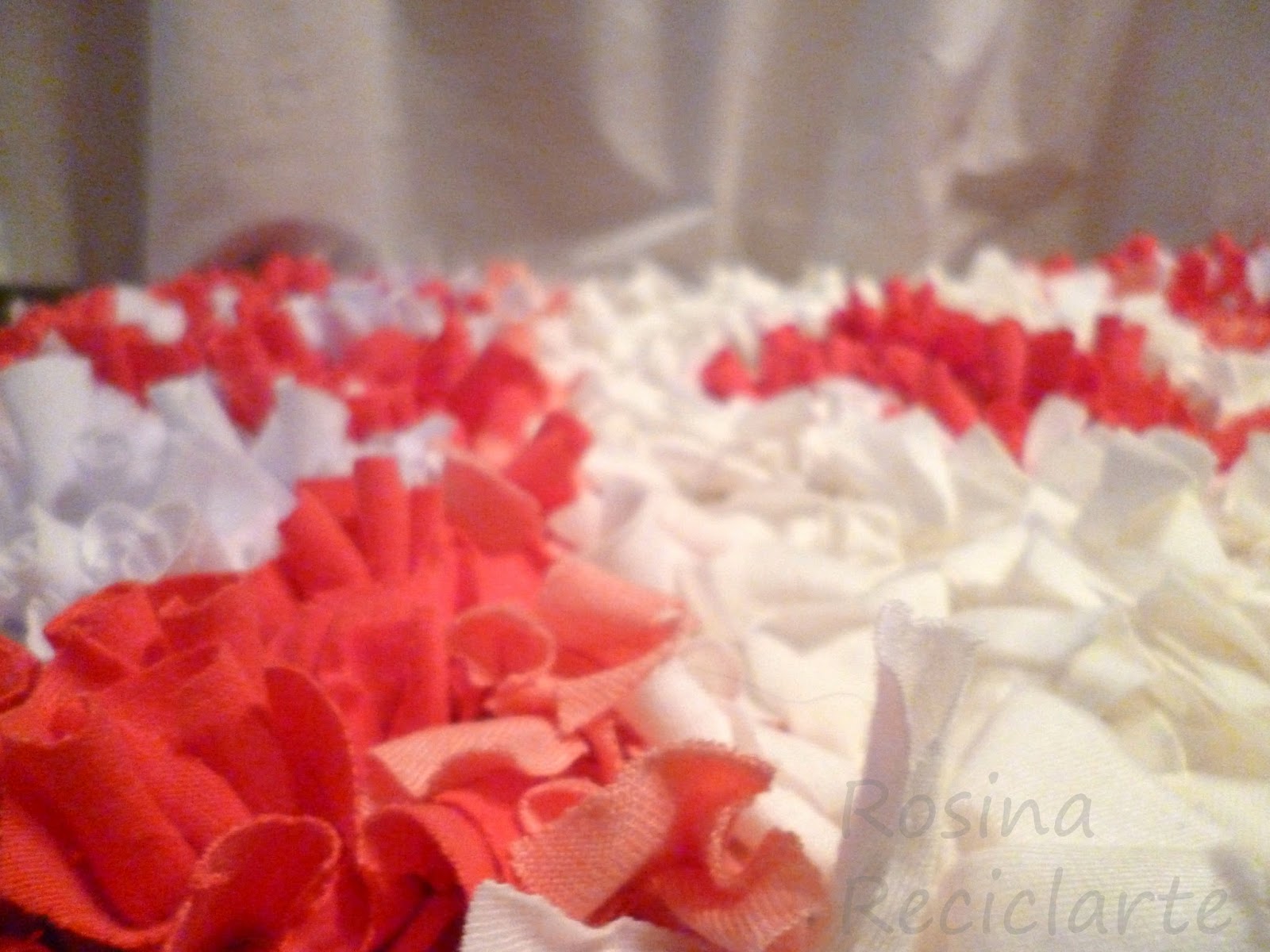 En este proyecto ya había usado algunos retazos de esos que basureé,y como en el paquete venía mucho modal, ya sabía que iba a concretar la alfombra que hace tiempo quería hacer.