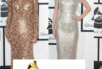 Bordado en tono bronce, la cantante presumió de baby bump con este vestido de Emilio Pucci.