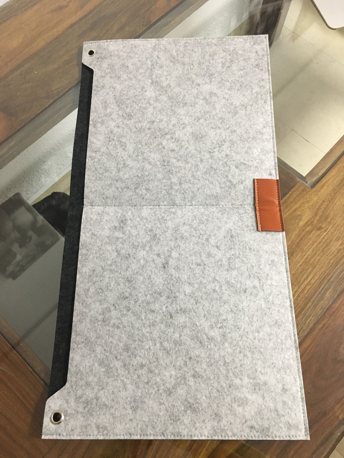 Es en fieltro y tiene dos bolsillos. En la ficha ponía que eran calienta-manos, pero vamos son dos bolsillos que bien sirven para guardar alguna nota o para algún bolígrafo. En mi caso bolígrafo y agenda.