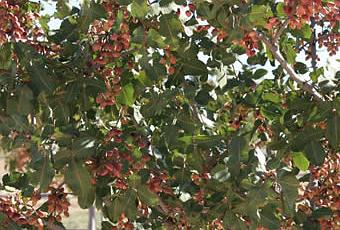 Esta planta medicinal es un árbol caducifolio pequeño, de 5 a 7 m. de altura, tiende a inclinarse y es de ramificación abundante y copa amplia. El pistachero es un árbol que tolera bien las sequias, las altas temperaturas, pero no tolera bien la alta humedad. El Pistacia vera L. es un árbol de desarrollo lento, pero la planta es muy longeva, de 150 a 300 años. Las hojas del alfóncigo son pinnadas y dioicas. Sus frutos como pequeñas bellotas, largos y con la punta aguda y encorvada, de color rojizo y piel arrugada, con la almendra comestible, el llamado pistacho, de color verdoso. El pistacho es rico en aceite y tiene la virtud de calmar y revitalizar.