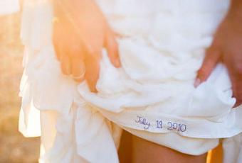 Los grandes diseñadores, en los años 20 y 30, tenían la costumbre de etiquetar, en la parte interior del Vestido de Novia, el nombre y apellido (de soltera) de la novia y la fecha de su Boda. Hoy en día, algunas novias desean etiquetar por igual, sus Vestidos, pero de color azul. Otras, además, incluyen el nombre del novio o utilizan monogramas, símbolos e incluso algo muy personal, como recuerdo de un familiar y/o amigo/a, fallecido.