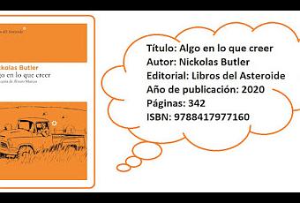 Pero ha llegado el dichoso coronavirus para ponerlo todo patas arriba. Toca quedarse en casa, lo que me permite tener todo el tiempo para jugar con los peques y, cómo no, para leer. Y hoy, mientras el pequeño se echaba la siesta y el mayor jugaba a ser Edurne Pasaban y escalar el Everest, he terminado Algo en lo que creer, la tercera novela que leo de Nickolas Butler después de Canciones de amor a quemarropa y El corazón de los hombres. Me ha gustado mucho. Y si a eso le sumamos el encierro forzoso en casa, me han entrado ganas de reseñar. Vamos a ello. El protagonista de esta historia es Lyle Hovde, un hombre jubilado que vive con Peg, su mujer, en una granja en Redford, un pueblecito de Wisconsin. Con ellos vive Shiloh, su hija, e Isaac, su nieto de cinco años. Shiloh es adoptada, madre soltera y han mantenido con ella una relación muy complicada desde que era adolescente. Los cuatro están felices de estar de nuevo juntos. Viven tranquilos, siguiendo el ritmo de las estaciones (el libro está estructurado en 31 capítulos divididos en cinco partes Primavera, Verano, Otoño, Invierno y nuevamente Primavera) y disfrutando de la compañía de sus seres queridos. Hoot, amigo de Lyle desde que eran niños. Un hombre divorciado, solitario, fumador compulsivo y bebedor de cerveza empedernido al que la salud le está empezando a jugar una mala pasada. Charlie, el pastor de San Olaf, la iglesia a la que acude la familia desde siempre. Otis y Mabel, un matrimonio dueño de un huerto de manzanos en el que Lyle trabaja de vez en cuando. Todos forman una comunidad tranquila, unida, aferrada a las tradiciones y las rutinas. Pero todo se tambalea cuando Steven, el pastor evangélico de una comunidad religiosa de La Crosse comienza a salir con Shiloh y a influir en su vida y en la de Isaac. Como es habitual en sus novelas, Butler construye los personajes de forma magistral. Todos son sencillos, cercanos, reales, humanos y, al mismo tiempo, complejos, profundos, intensos, carismáticos. Se les coge muchísimo cariño y no se les olvida fácilmente. Dejan huella. En mi caso me han llegado muy adentro Lyle y, sobre todo, Isaac. Un niño muy especial, cariñoso, inteligente, dulce y, como todos los niños, tremendamente vulnerable. Él está en medio de esa especie de guerra que emprenden Shiloh y Steven frente al resto del mundo, sobre todo contra Lyle. Esta novela nos habla de las relaciones familiares, entre padres e hijos y entre abuelos y nietos. De la comunidad a la que pertenecemos, de la red que nos sostiene cuando vienen mal dadas. Pero, como su título hace ver, también habla de nuestras creencias y de nuestra fe. Peg y especialmente Lyle dejaron de creer cuando su hijo Peter murió con tan solo nueve meses. Acuden a la iglesia más por costumbre y tradición, como un lugar de encuentro, que por creencia o fe. Pero la enfermedad de Hoot y las circunstancias que rodean su relación con Shiloh y con Isaac (no quiero hacer spoiler) le hacen cuestionarse todo. Con un lenguaje pausado, envolvente, sutil y cálido, con descripciones concisas que nos trasladan al Medio Oeste americano, Butler nos habla de los peligros que se esconden detrás de las creencias, nos cuenta una historia que, por estar basada en unos hechos reales ocurridos en 2008, son todavía más desgarradores y nos demuestra que siempre hay algo en lo que creer cuando estamos dispuestos a cuidar y a proteger a las personas que amamos. Si te interesa el libro puedes encontrarlo aquí.